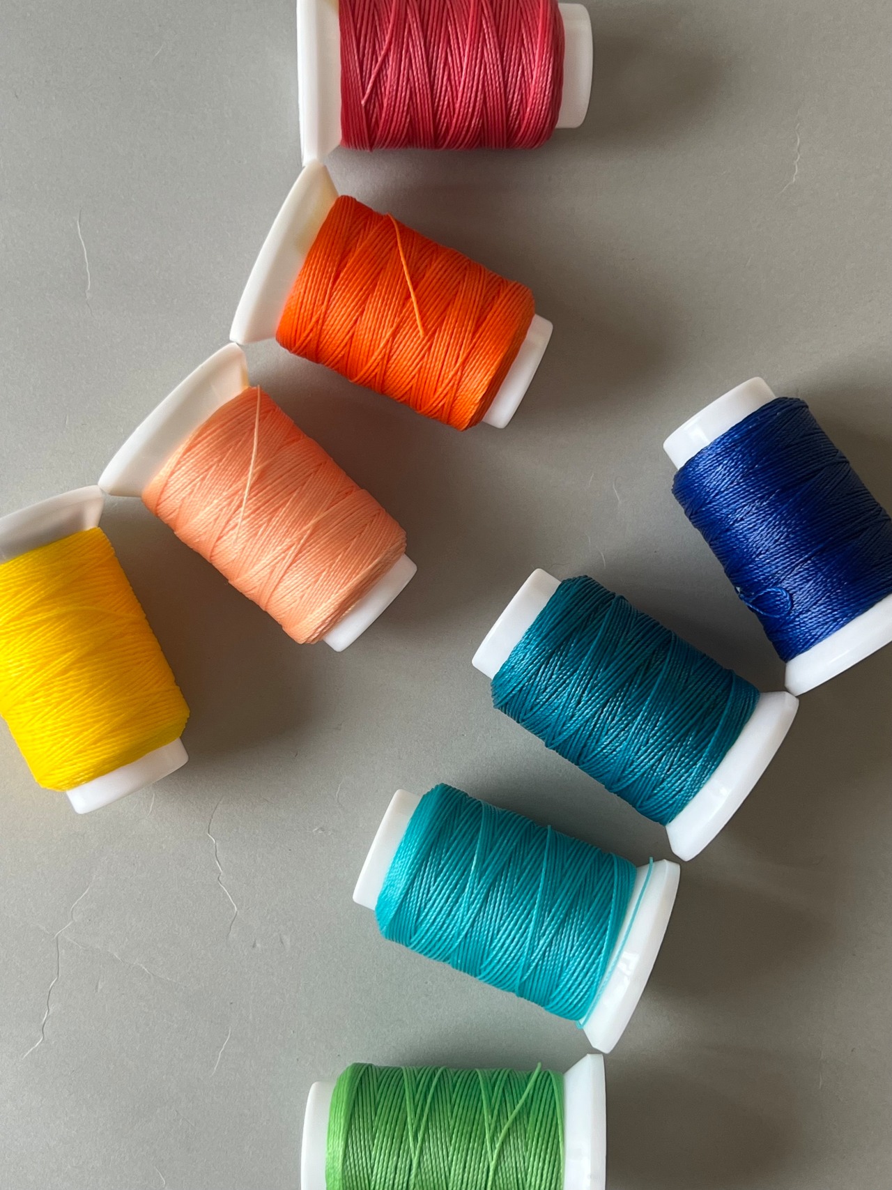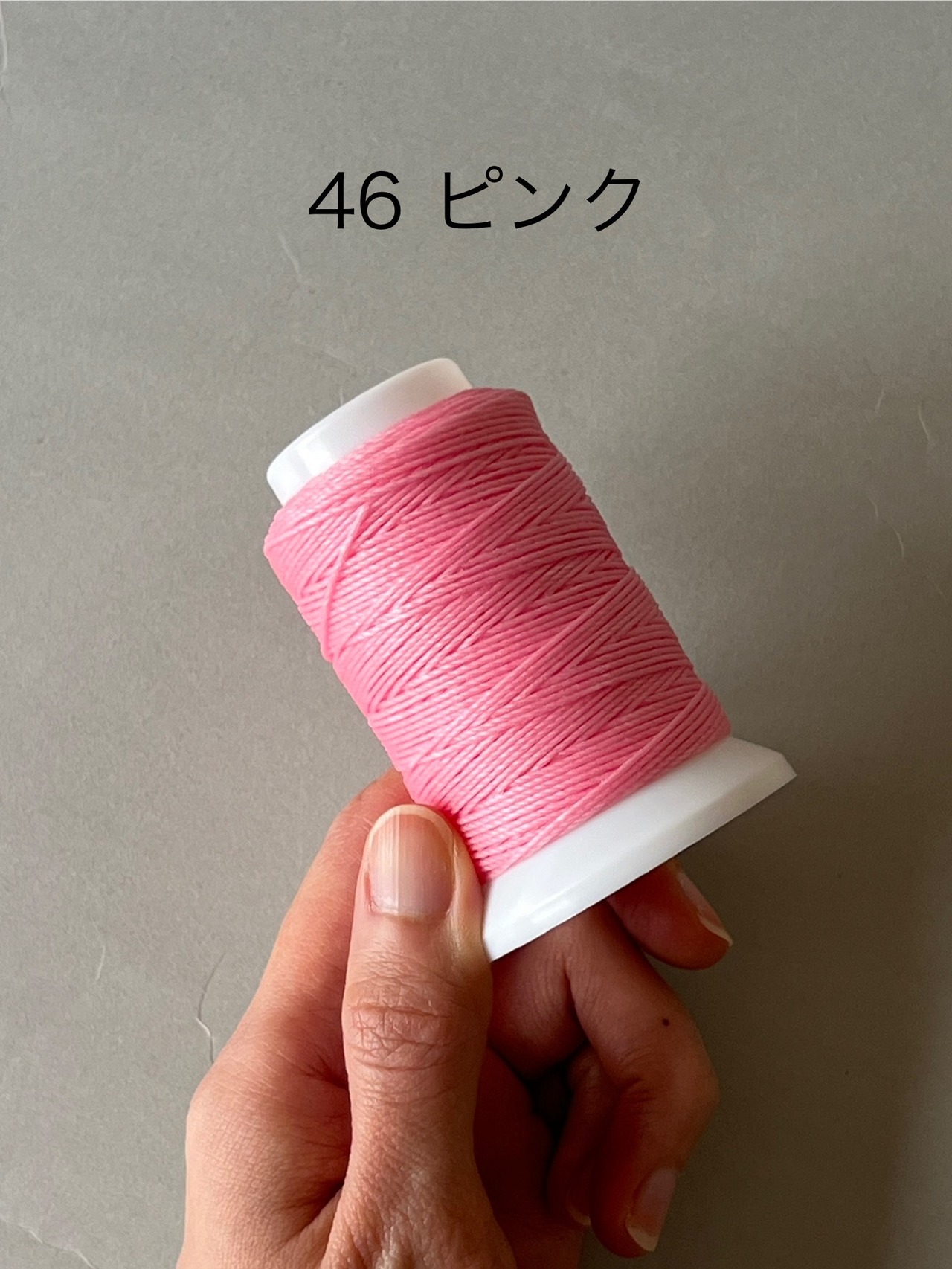 ビニモミシン糸にロウをたっぷりとつけた手縫い糸(ポリエステル素材)